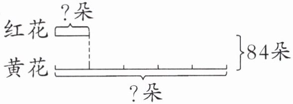 (2) 红花:$84÷(1+5)=14$(朵)