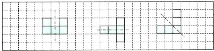 【提示】可在图形左侧、右侧、上方或下方尝试补充小方格,补充后沿某条直线对折能重合,这条直线就是对称轴,通过尝试不同补充位置,得到三种符合要求的情况。