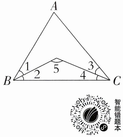 如右下图所示,在$△ ABC$中,$∠ 1=∠ 2+5^{\circ}$,$∠ 3=∠ 4+5^{\circ}$,$∠ 5=130^{\circ}$,$∠ A$等于多少度?