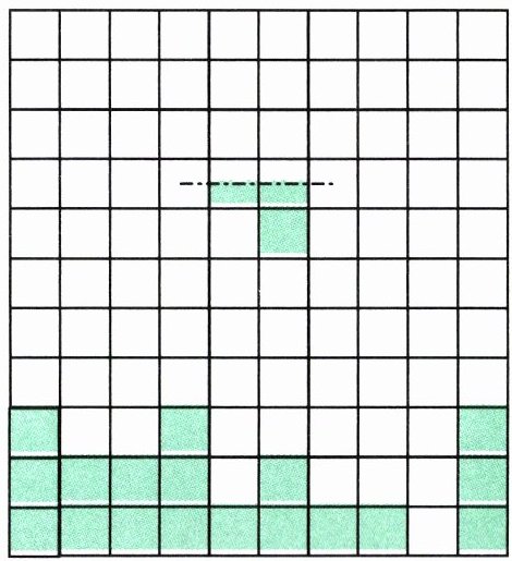 (1)图中即将下落的方块是一个轴对称图形,以点划线为对称轴,补全这个轴对称图形。
