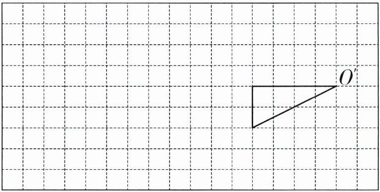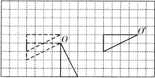 3. 把一个三角形先绕点O顺时针旋转90°,再向上平移1格,最后向右平移9格,得到现在方格图中的三角形,其中点O平移后的对应位置是点O'。请画出原来的三角形。