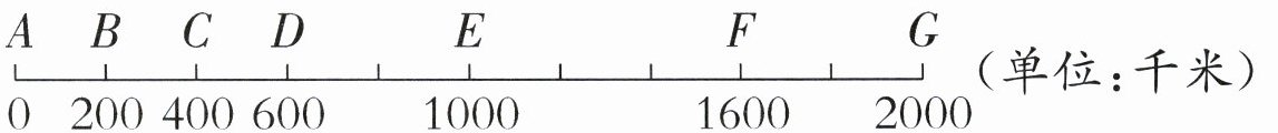4. 中国高铁是我国经济社会发展的一张独特而亮丽的“名片”。至2024年底,中国高铁运营里程超过4.8万千米,位居世界第一。据了解,高铁的票价是按“票价=每千米乘车的价钱×乘车路程”的方法计算出来的。已知复兴号高铁二等座每千米乘车的价格约4角,A站与G站间的总路程为2000千米,沿途各站的情况如下图:
