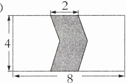 把右边的涂色三角形向左平移2厘米,涂色部分就变成一个长4厘米、宽2厘米的长方形,涂色部分的面积是 $4×2 = 8$ (平方厘米)。