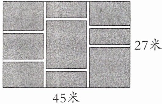 【提示】经过平移,将草坪全部拼到一起,可以得到一个长方形。这个长方形的长是 $45 - 1×2 = 43$ (米),宽是 $27 - 1×2 = 25$ (米)。
