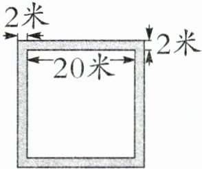 街心花园中间有一个边长为20米的正方形花坛,花坛四周有2米宽的石子路,石子路的面积是多少平方米?
