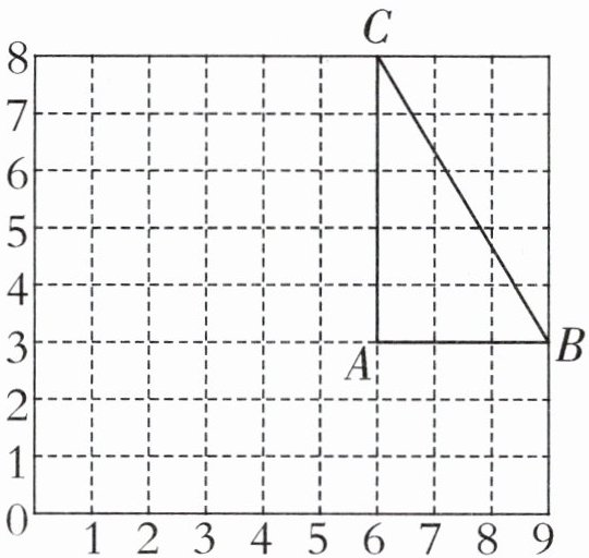 (1) 用数对表示图中三角形三个顶点 $A$、$B$、$C$ 的位置。