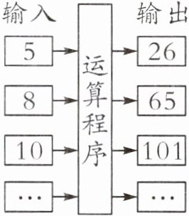 【提示】(1)根据给出的几组数可知,用所给的数乘本身加上 1 即可输出结果。把 6 代入计算:$6×6+1=37$;(2)根据结果 82 往前推:$82-1=81,81=$
