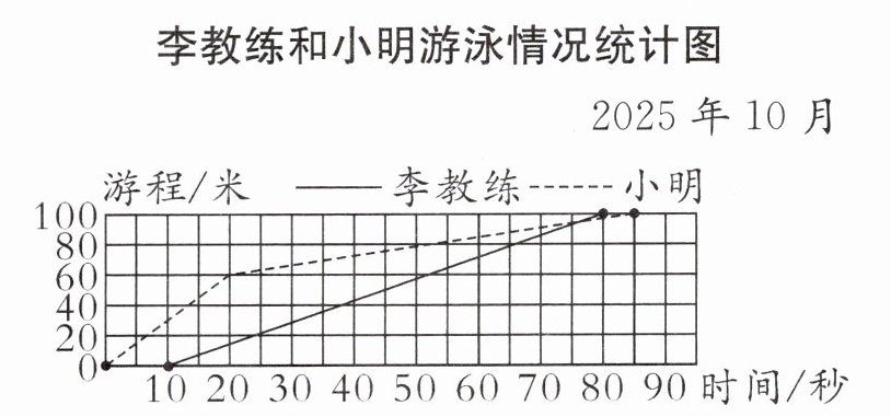3. 下图是春雨小学李教练陪小明练习 100 米蛙泳,他们两人游泳的游程和时间的关系统计图。