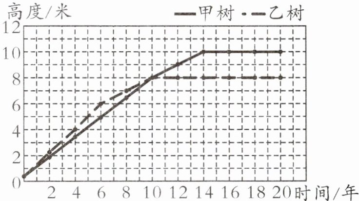(1)从种下到第4年,两棵树中生长速度较快的是(