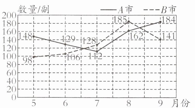 答案:(1)A市:5月到7月售卖量逐渐下降,7月到9月逐渐上升;B市:5月到8月售卖量逐渐上升,8月到9月逐渐下降。