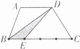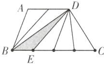 7. 如下图,在梯形$ABCD$中,如果$BC$的长度是$AD$的 2 倍,点$E$是下底$BC$的四等分点,那么三角形$BDE$的面积占梯形$ABCD$面积的$\frac{(\quad)}{(\quad)}$。