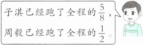 子淇已经跑了全程的$\frac{5}{8}$,周毅已经跑了全程的$\frac{1}{2}$。