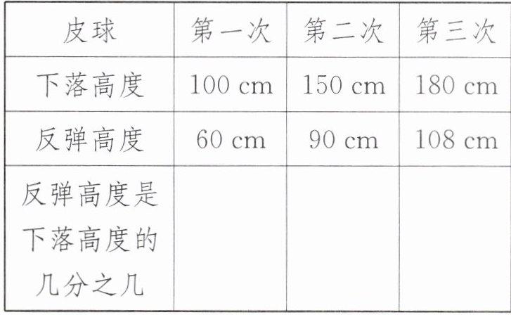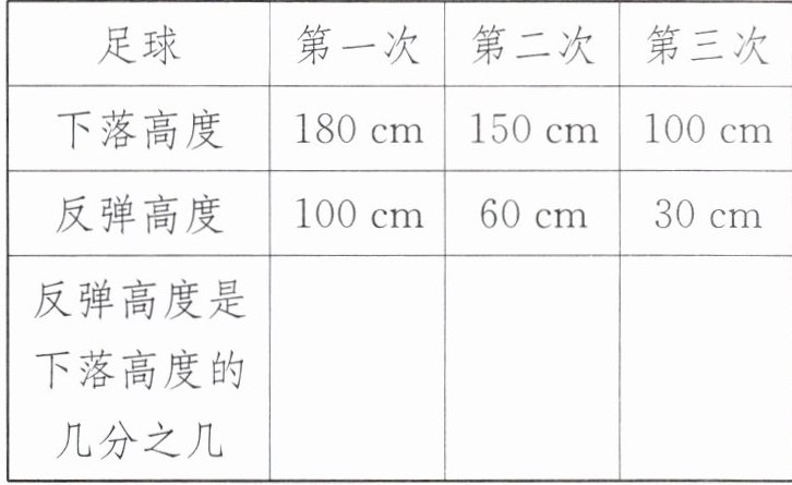 【提示】用反弹高度除以下落高度,即可算出反弹高度是下落高度的几分之几。