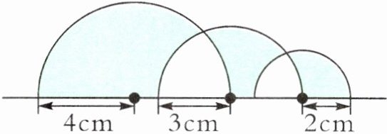 6. 将半径 4 厘米、3 厘米和 2 厘米的三个半圆叠放在一起(如下图),涂色部分的周长是多少厘米?