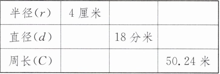 【提示】圆的直径是半径的2倍,圆的周长=π×圆的直径。