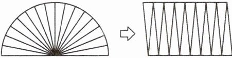 (2) 如下图,把一个半圆分成 16 等份,然后拼成一个近似的平行四边形。它们的周长相比,(