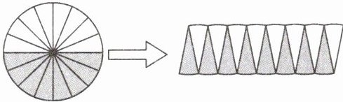 6.(南通通州区·运算能力)将一个圆形纸片平均分成若干份,剪开后拼成一个近似的平行四边形(如下图)。平行四边形的一条较长边比一条较短边长4.28厘米。