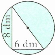 $6^{2}+8^{2}=100$,$100=10^{2}$,半径:$10÷2=5$(dm),$3.14×5^{2}-6×8÷2=54.5$(dm²)