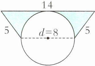 面积:$(8 + 14)×(8÷2)÷2 - 3.14×(8÷2)^{2}÷2 = 18.88$(cm²)