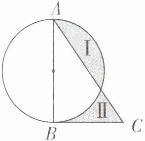【提示】涂色部分Ⅰ和涂色部分Ⅱ的面积无法直接计算,两者可以同时加上左边空白部分面积,这样两个涂色面积之差就可以转化为半圆和三角形 ABC 的面积之差。