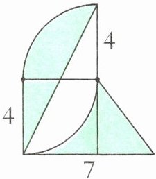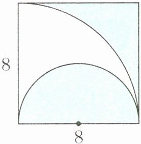 【提示】用边长为 8 厘米的正方形面积减去半径为 8 厘米的 $\frac{1}{4}$ 圆的面积,再加上直径为 8 厘米的半圆的面积即可。