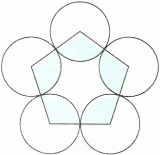 3. 如右下图,由五个相同的圆的圆心连线构成一个边长为10厘米的正五边形。求正五边形内涂色部分的周长和面积。