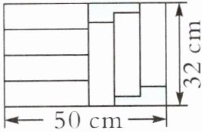 答案:(3)D [提示]从题图中可知4个小长方形的宽的和是32cm,因此每个小长方形的宽是$32÷4 = 8$(cm),小长方形的长是$50 - 3×8 = 26$(cm)。涂色部分的面积是$50×32 - 26×8×7 = 144$($cm^{2}$)。