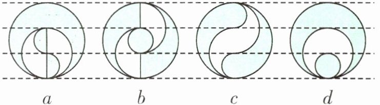 答案:(1)D [提示]四个图涂色部分的面积都等于大圆面积减去中圆面积再加上小圆面积,所以四个图涂色部分的面积都相等。