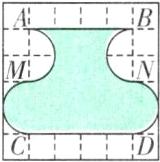 答案:(4)20.56 16 [提示]如下图,图案的周长$=AB + CD + 4$个半圆的弧长,$AB = CD = 4$厘米,4个半圆的弧长正好是2个直径为2厘米的圆的周长。将左下角的半圆绕点M顺时针旋转$180^{\circ}$,右下角的半圆绕点N逆时针旋转$180^{\circ}$,可得图案的面积 = 正方形ABDC的面积,正方形ABDC的边长是4厘米,根据正方形的面积 = 边长×边长解答即可。