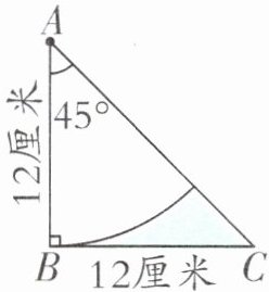 答案:5. $ 12 × 12 ÷ 2 = 72 $(平方厘米) $ 360^{\circ} ÷ 45^{\circ} = 8 $ $ 72 - 3.14 × 12^{2} ÷ 8 = 15.48 $(平方厘米)