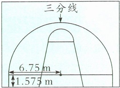 三分线以内区域的面积:$6.75×2×1.575 + \frac{1}{2}×3.14×6.75^{2} \approx 92.80$(平方米)