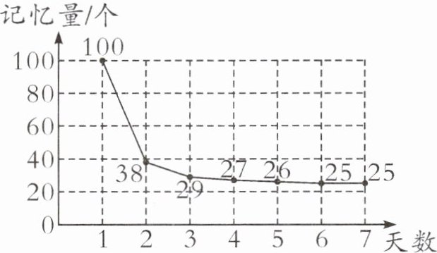 3. 跨学科 遗忘规律 遗忘是有规律的。遗忘规律是由德国心理学家艾宾浩斯提出来的,他提出了著名的“遗忘曲线”。为了验证这一规律,明明做了一个实验,他第一天背了100个单词,以后每天对这些单词进行听写,听写正确的个数情况如下。