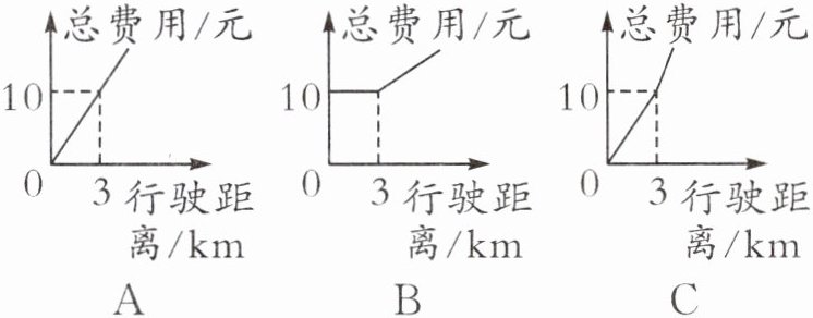 答案:(2) B 【提示】根据题意可知,前 3 千米内费用保持 10 元不变,超过 3 千米的总费用逐渐递增,故选 B。