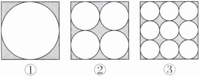 【提示】计算正方形的总面积,再减去正方形内圆的总面积,得到剩余面积。关键是如何确定每个圆的直径。