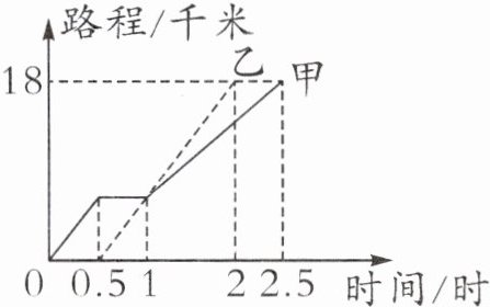 (1)甲、乙两人骑自行车从学校沿同一路线到 18 千米外的书店,他们骑行的路程和时间的关系如下图,下面说法错误的是(