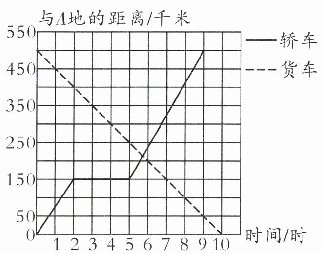 10. 轿车从$A$地开往$B$地,货车从$B$地开往$A$地,行驶的情况如下图。