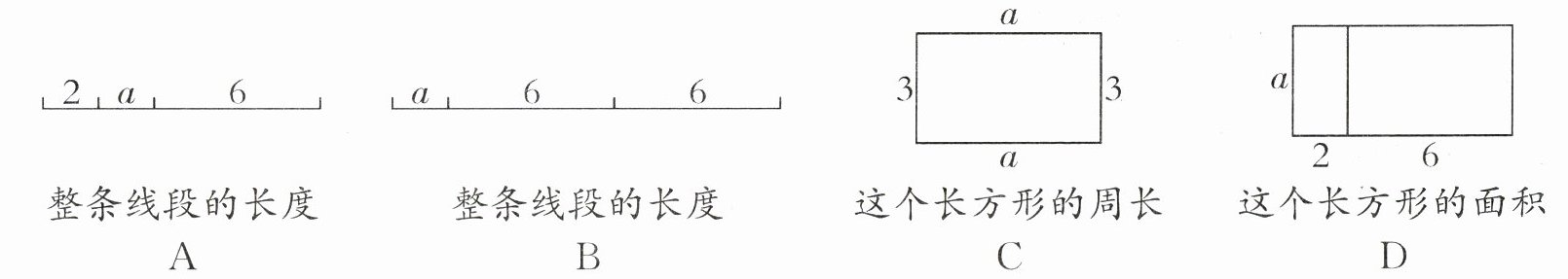 D. 这个长方形的面积:$a×(2 + 6) = 8a$