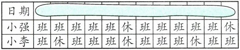 5. 实验班原创 应用意识 泥塑,俗称“彩塑”,是一种中国民间传统艺术,也是国家级非物质文化遗产之一。下面是某泥塑工坊4月份排班表的一部分,其中“日期”部分已经看不清了。已知小强和小李在4月8日同时休息,那么他们下一次同时休息是几月几日?