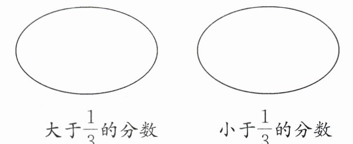 答案:1. 大于 $\dfrac{1}{3}$ 的分数:$\dfrac{3}{8}$、$\dfrac{3}{7}$、$\dfrac{6}{11}$、$\dfrac{3}{4}$、$\dfrac{5}{9}$ 小于 $\dfrac{1}{3}$ 的分数:$\dfrac{1}{6}$、$\dfrac{1}{5}$、$\dfrac{4}{13}$