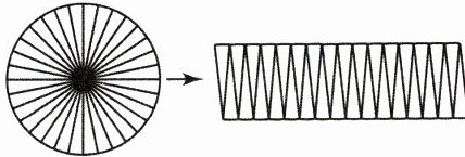 2. 如右下图,将半径为r的圆形纸片剪拼成近似的平行四边形后,平行四边形的周长是(