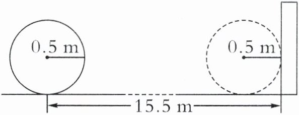 【提示】油桶每滚动一圈,经过的路程就是油桶底面圆的周长,由图可知油桶与墙的距离为 15.5 - 0.5 = 15(米),用距离除以油桶底面圆的周长就是油桶需要滚动的圈数。
