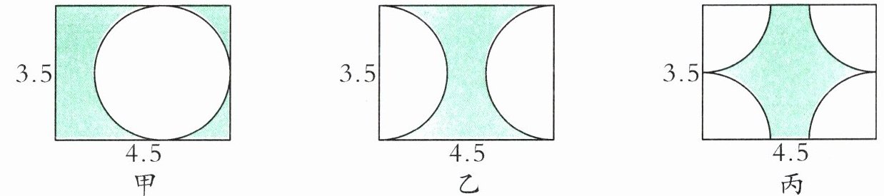 甲、乙、丙三个长方形相同,面积均为$3.5×4.5$。