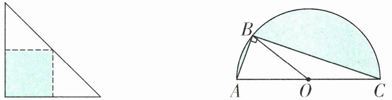 答案:7. A 【提示】观察可知,涂色部分的面积可以转化为半圆的面积减去直角三角形 ABC 的面积。半圆的面积为$3.14×4^{2}÷2=25.12$(平方厘米),三角形 AOB 与三角形 BOC 等底等高,因此三角形 BOC 的面积为 6 平方厘米,涂色部分面积为$25.12-6-6=13.12$(平方厘米)。
