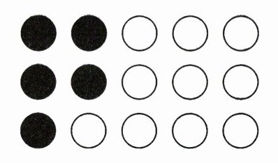 6. 如右上图,现在有 15 枚棋子,如果增加 1 枚黑棋子,那么黑棋子数占棋子总数的$\frac{(\ \ \ \ \ \ )}{(\ \ \ \ \ \ )}$;如果增加 1 枚白棋子,那么黑棋子数占棋子总数的$\frac{(\ \ \ \ \ \ )}{(\ \ \ \ \ \ )}$。