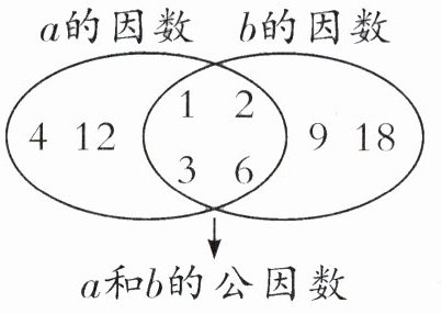 答案:5. $12$ $18$ $6$ 【提示】一个数的最大因数是它本身,$a$ 的最大因数是 $12$,$a$ 是 $12$,$b$ 的最大因数是 $18$,$b$ 是 $18$,$a$ 和 $b$ 的最大公因数是 $6$。