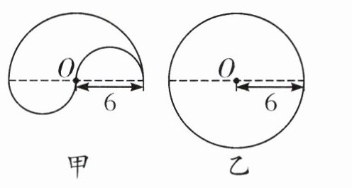 甲图面积:半径为6cm的半圆面积,即$\frac{1}{2}π×6^2 = 18π$cm²。