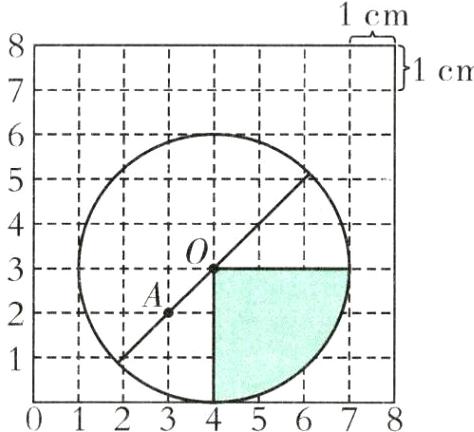 (1)以点$O(4,3)$为圆心,在右图中画一个半径 3 厘米的圆。
