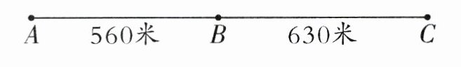 【提示】要在马路 $AC$ 一侧等距离地安装路灯,且 $A$、$B$、$C$ 三处均要安装,说明路灯的间隔距离既是 $560$ 的因数,又是 $630$ 的因数。要使安装的路灯盏数最少,就要求出 $560$ 和 $630$ 的最大公因数,即相邻两盏路灯的距离。用马路 $AC$ 的总距离除以间距,再加 $1$,即是至少安装的路灯盏数。
