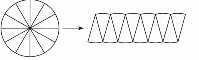 11. 把圆剪成若干个大小相等的扇形,并把它拼成近似的平行四边形(如右上图)。已知平行四边形的周长比圆的周长多了$8$厘米,则圆的周长是(