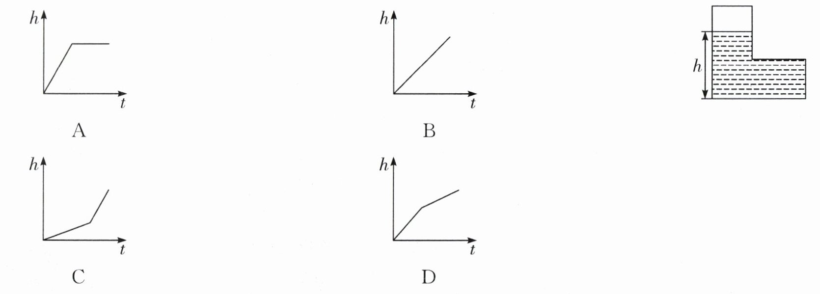 4. 右下图是一个蓄水池截面图,分为深水区和浅水区。如果这个蓄水池以固定的流量注水,那么下图能表示水的最大深度h和注水时间t之间的关系的是(